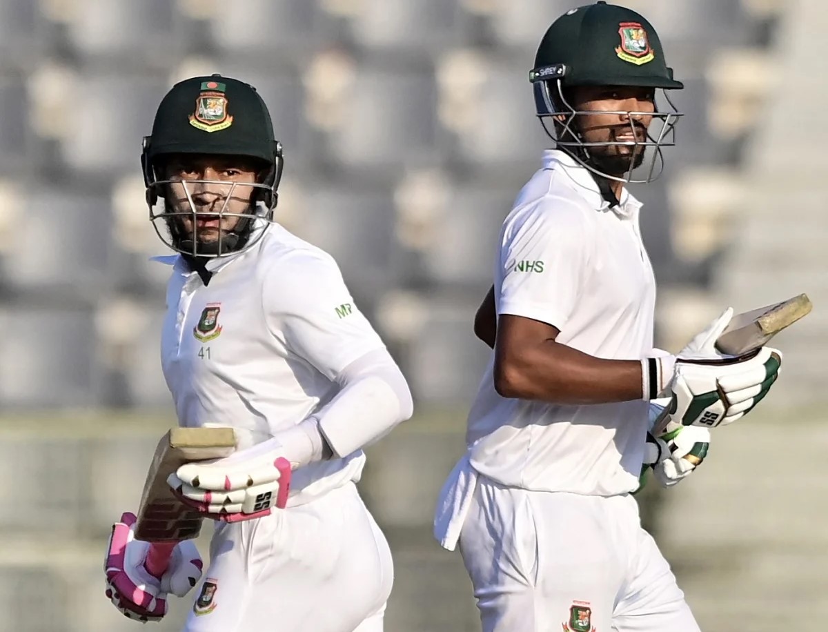 এরপর দিনের বাকি সময়টুকু শান্ত ও মুশফিক মিলেই পেরিয়ে গেছেন। তাদের অবিচ্ছন্ন ৯৬ রানের জুটিতে বড় সংগ্রহের সুবাস পাচ্ছে স্বাগতিক দল। মুশফিক ৪৩ রানে অপরাজিত ছিলেন, শান্ত পেয়েছেন ক্যারিয়ারের পঞ্চম সেঞ্চুরি। এই সেঞ্চুরি করার পথে একটি মাইলফলকও ছুঁয়েছেন বাঁহাতি এই ব্যাটার। বাংলাদেশের অধিনায়ক হিসেবে নেমে প্রথম ম্যাচে এর আগে কেউই সেঞ্চুরি করতে পারেননি। সর্বোচ্চ ৯৬ রানের অপরাজিত ইনিংস খেলেছিলেন অধিনায়ক সাকিব আল হাসান। তার পুরোনো রেকর্ড ভেঙে শান্ত নিজেকে নিয়ে গেলেন অনন্য এক উচ্চতায়।