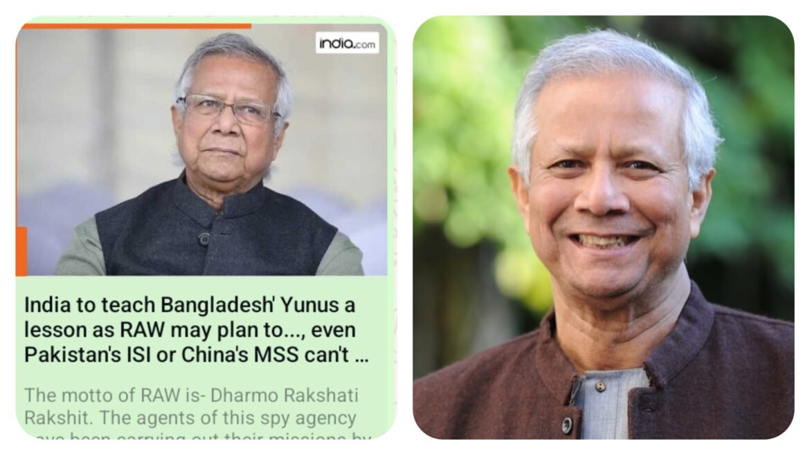 ভারতের শীর্ষ গোয়েন্দা সংস্থা RAW (রিসার্চ অ্যান্ড অ্যানালাইসিস উইং) বাংলাদেশের অন্তর্বর্তীকালীন সরকারপ্রধান মোহাম্মদ ইউনূসকে ‘শিক্ষা দিতে’ চায় — এমন প্রতিবেদন প্রকাশ করেছে ভারতীয় সংবাদমাধ্যম ইন্ডিয়া.কম। ইউনূসের চীন ও পাকিস্তানের সঙ্গে ঘনিষ্ঠতা এবং ভারতবিরোধী অবস্থানকে কেন্দ্র করে RAW তাকে লক্ষ্যবস্তুতে পরিণত করেছে বলেই দাবি করা হয়েছে প্রতিবেদনে। তবে এই দাবি ঘিরে ভারতের বাইরে বিশেষত ঢাকায় সৃষ্টি হয়েছে প্রবল হাস্যরস।