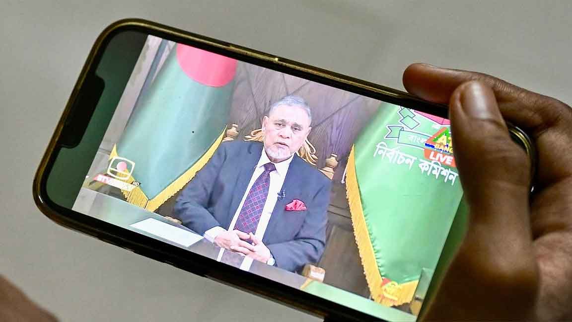 জাতির উদ্দেশে ভাষণ দিচ্ছেন সিইসি। টেলিভিশন থেকে নেয়া ছবি।
