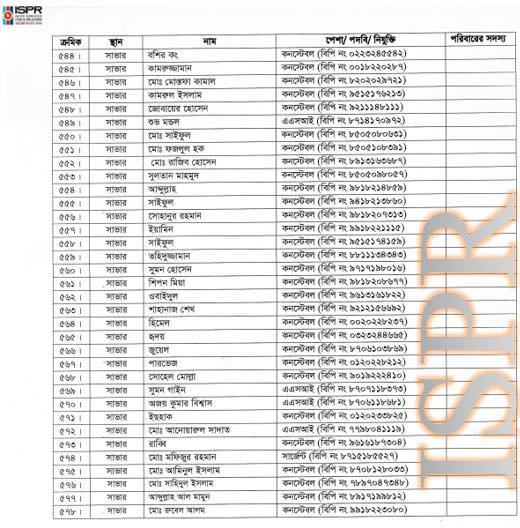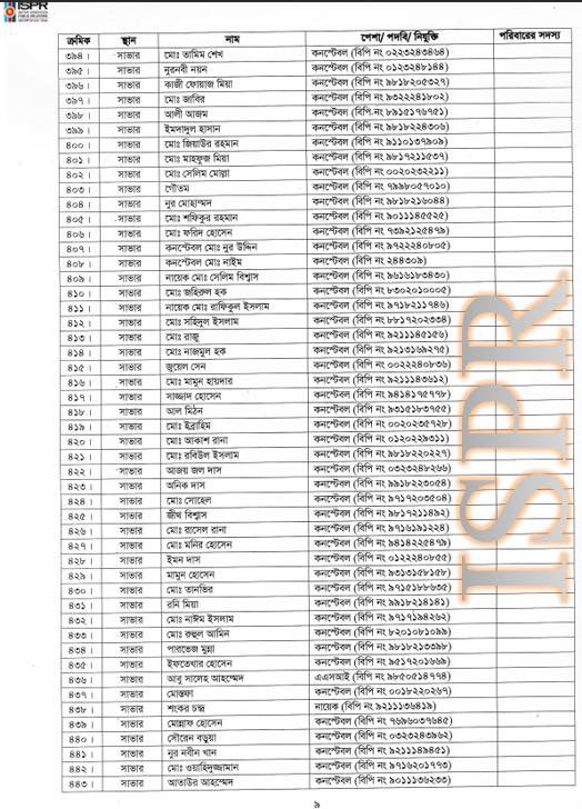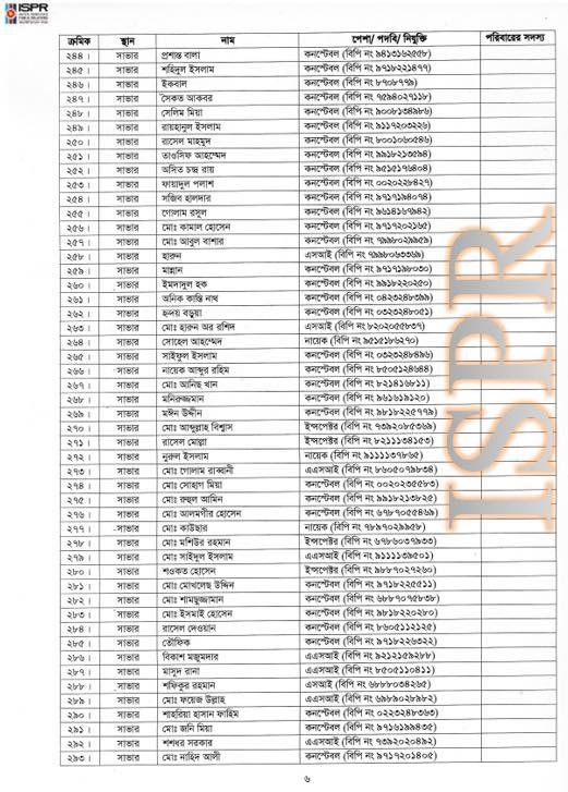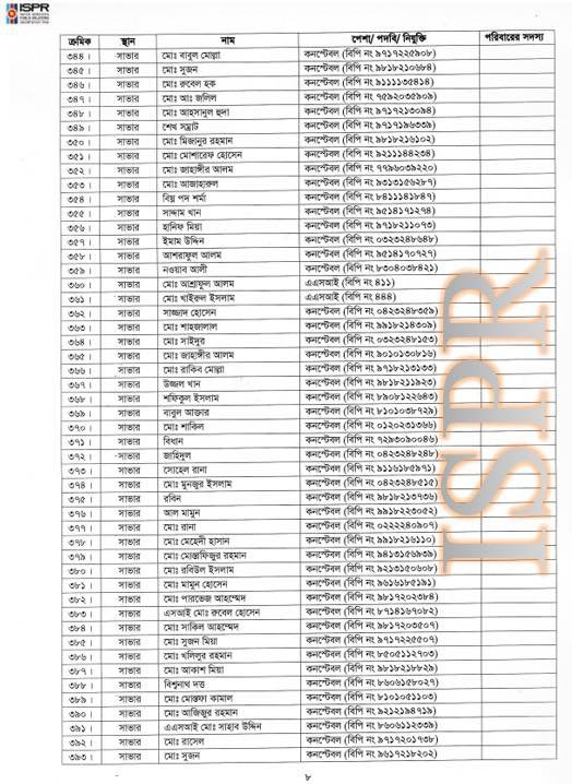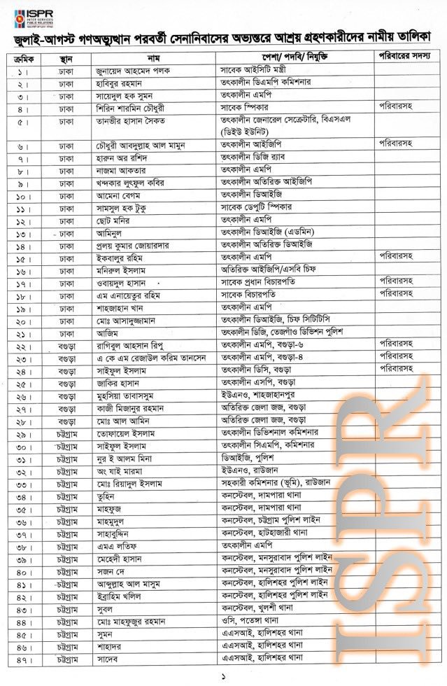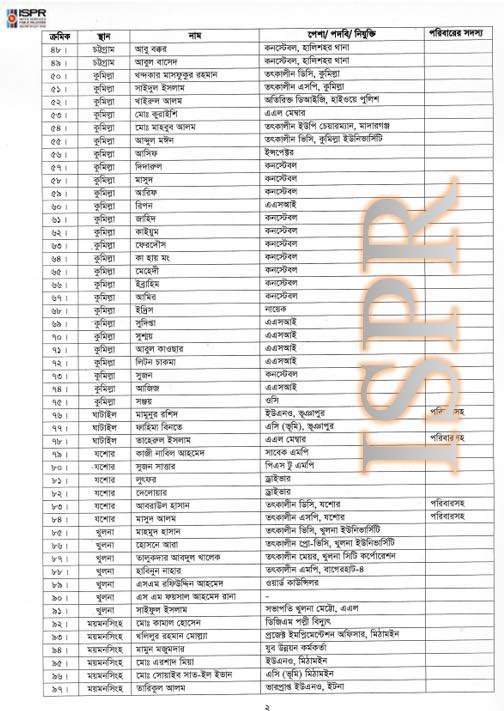 প্রেস বিজ্ঞপ্তির সঙ্গে ৬২৬ জনের পূর্ণাঙ্গ তালিকাও সংযুক্ত করে সেনাবাহিনী পুনরায় স্পষ্ট করেছে যে, মানবিক দায়বদ্ধতা থেকেই এই আশ্রয় প্রদান করা হয়েছিল।