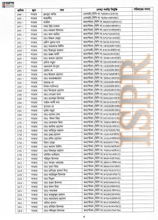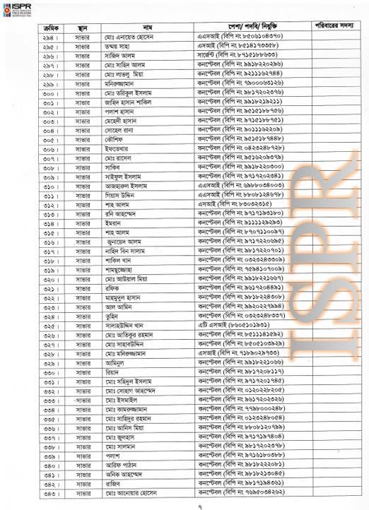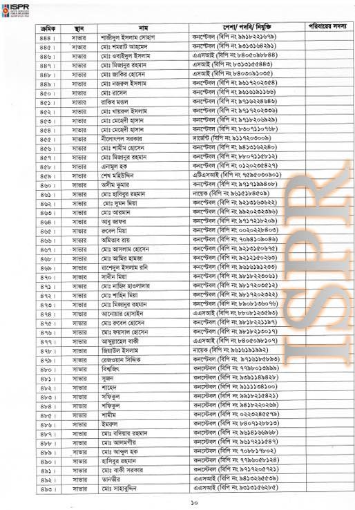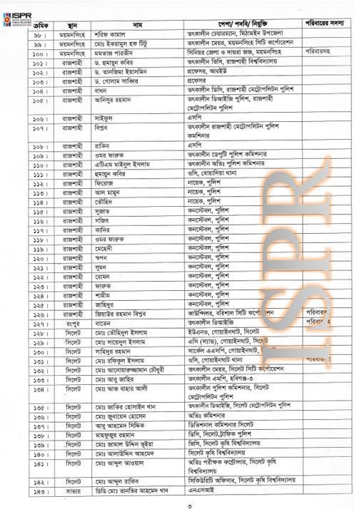 গত বছরের ১৮ আগস্ট আইএসপিআরের সংবাদ বিজ্ঞপ্তিতে এই বিষয়টি আনুষ্ঠানিকভাবে জানানো হয় এবং একই দিনে ১৯৩ জনের তালিকা (৪৩২ জন সাধারণ পুলিশ ও ১ জন এনএসআই সদস্য ছাড়া) স্বরাষ্ট্র মন্ত্রণালয়ে পাঠানো হয়। সেনাবাহিনীর ভাষ্যমতে, এটি ছিল একটি মীমাংসিত বিষয়।