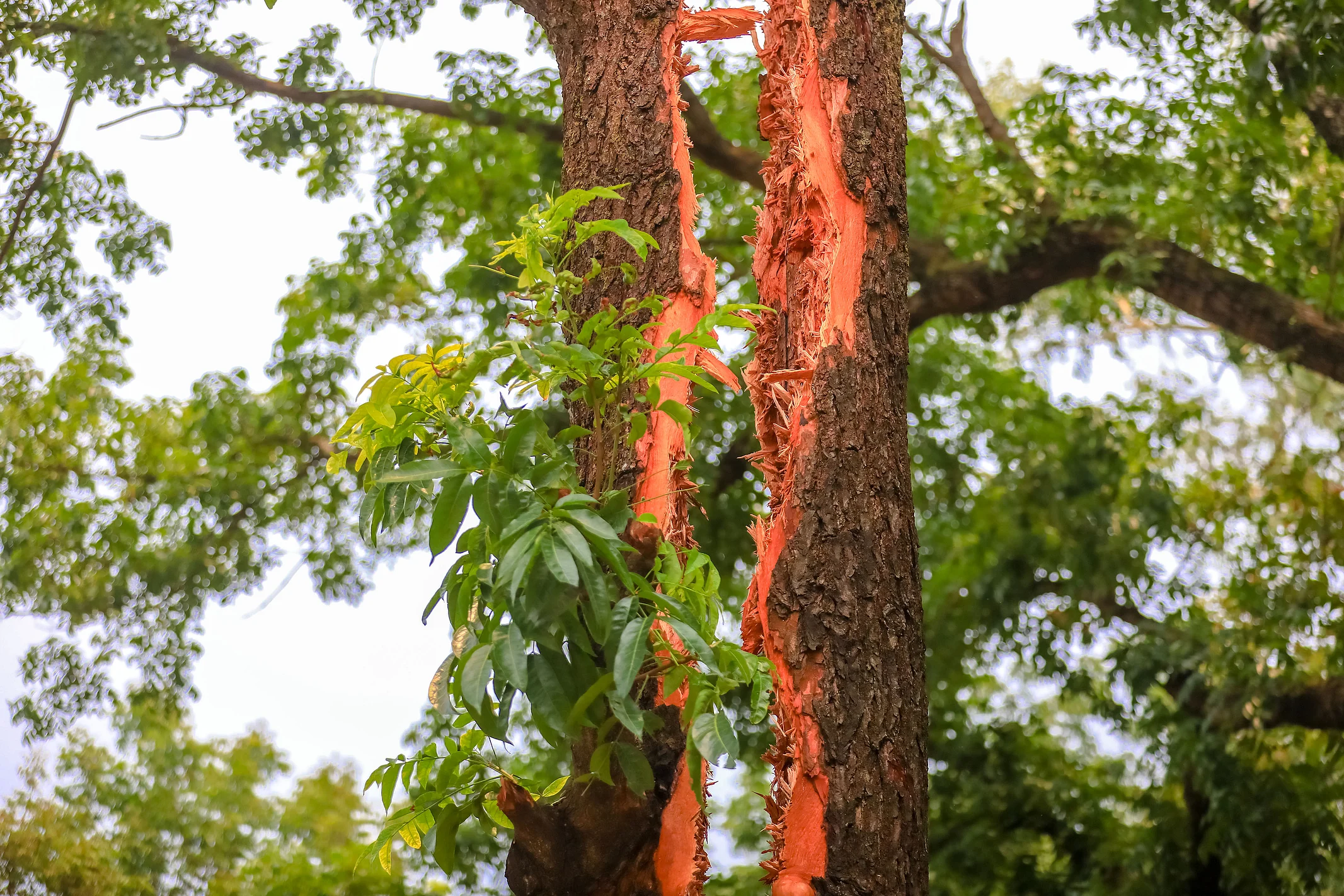 দুপুর ১২টার দিকে সরেজমিন দেখা যায়, পদার্থবিজ্ঞান বিভাগের সামনে থাকা লম্বা মেহগনিগাছটি মাঝ বরাবর ফেটে গেছে। গাছটি উপরে সবুজ পাতায় ভরা ছিল এবং প্রায় ২০ ফুট পর্যন্ত কাণ্ড ফেটে খোলা হয়ে গেছে। তবে গাছে কোনো পোড়া দাগ দেখা যায়নি।